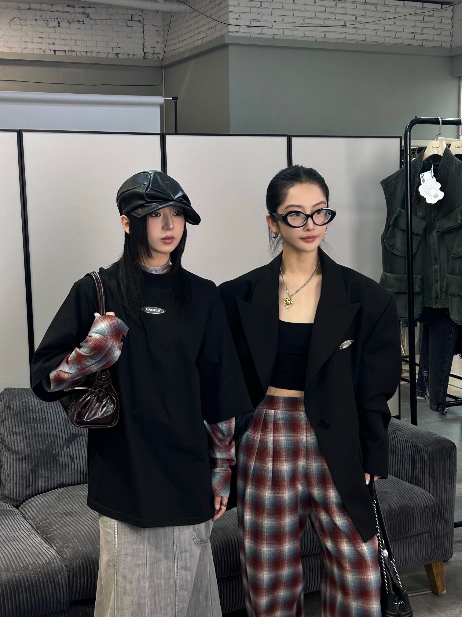 PSYCHOBEIBI 可拆卸格子长袖T恤