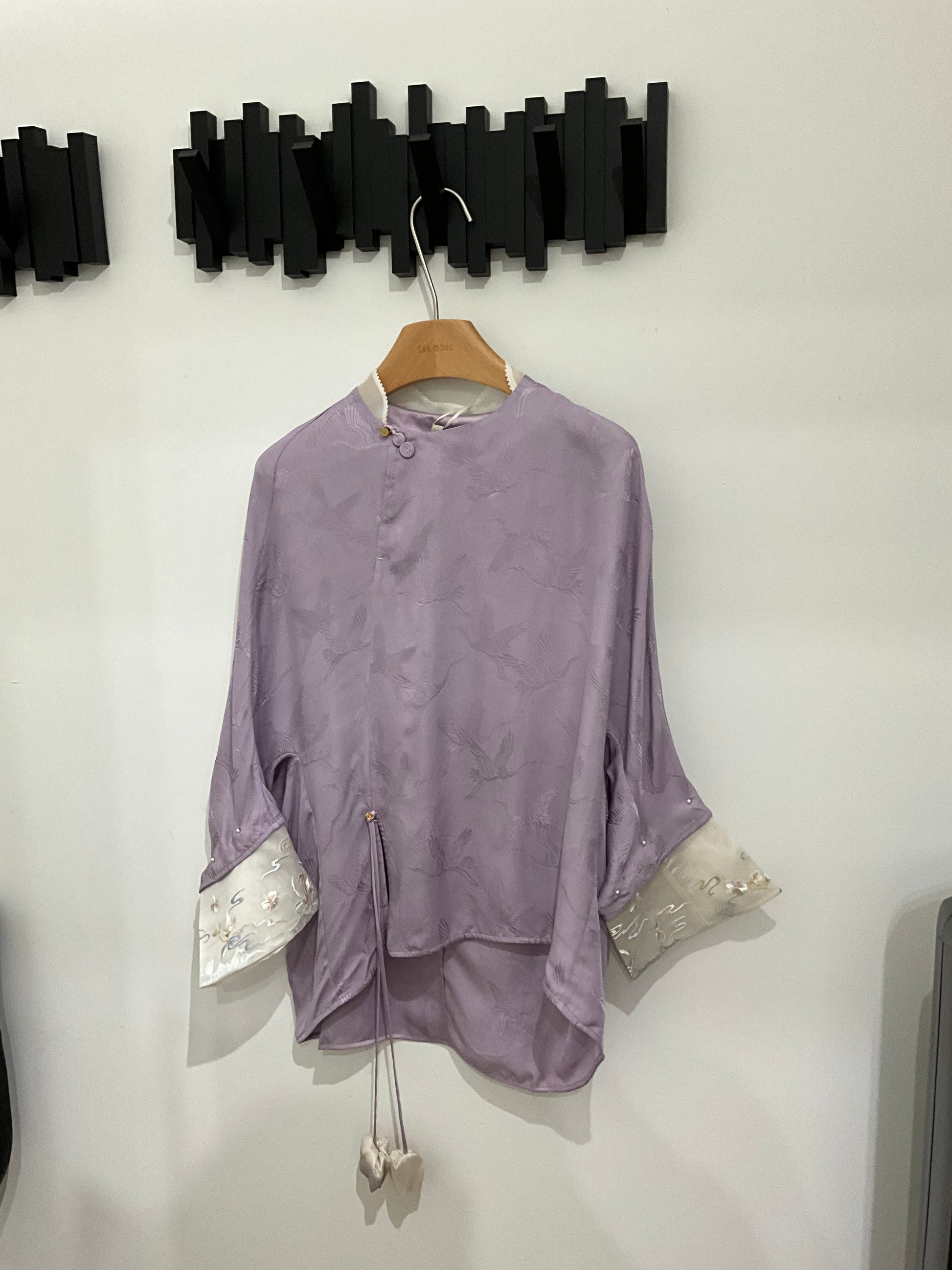 欧根纱领袖拼接龟背宽松绣花上衣97XH