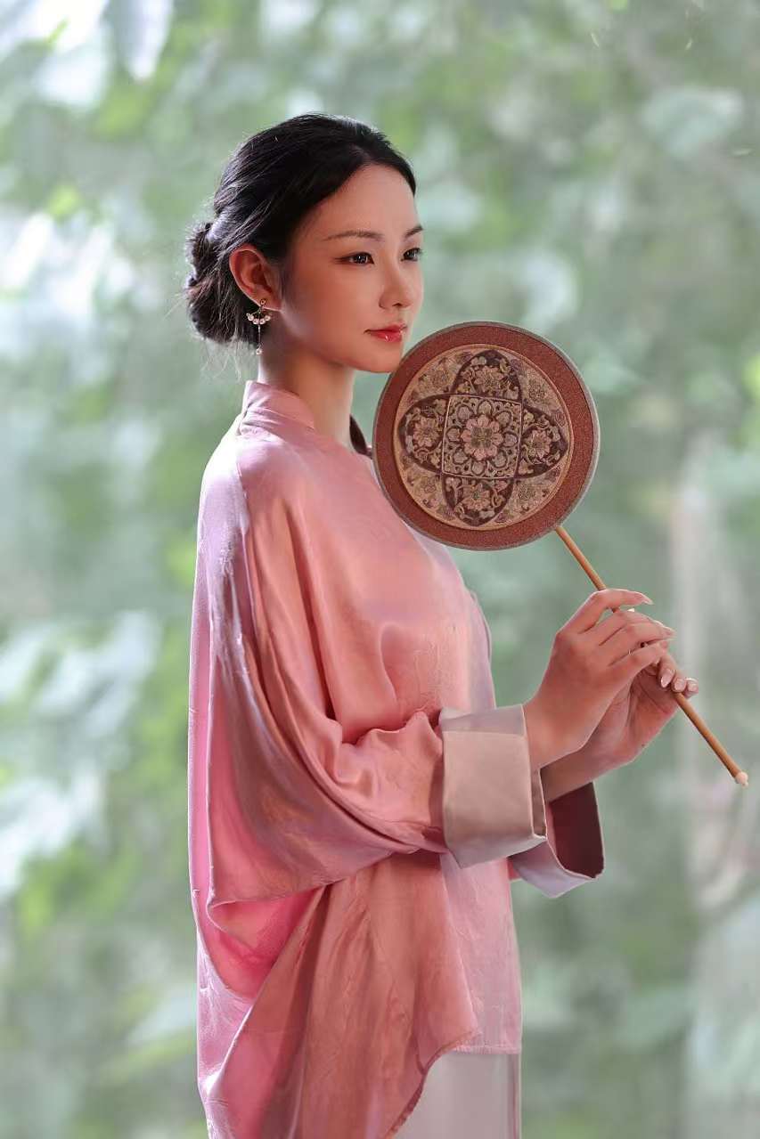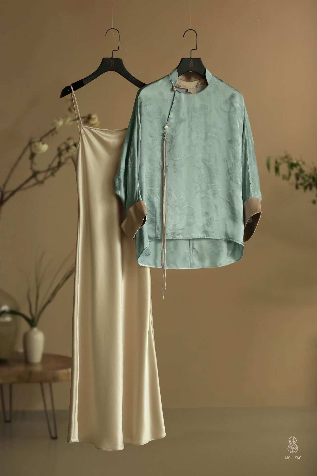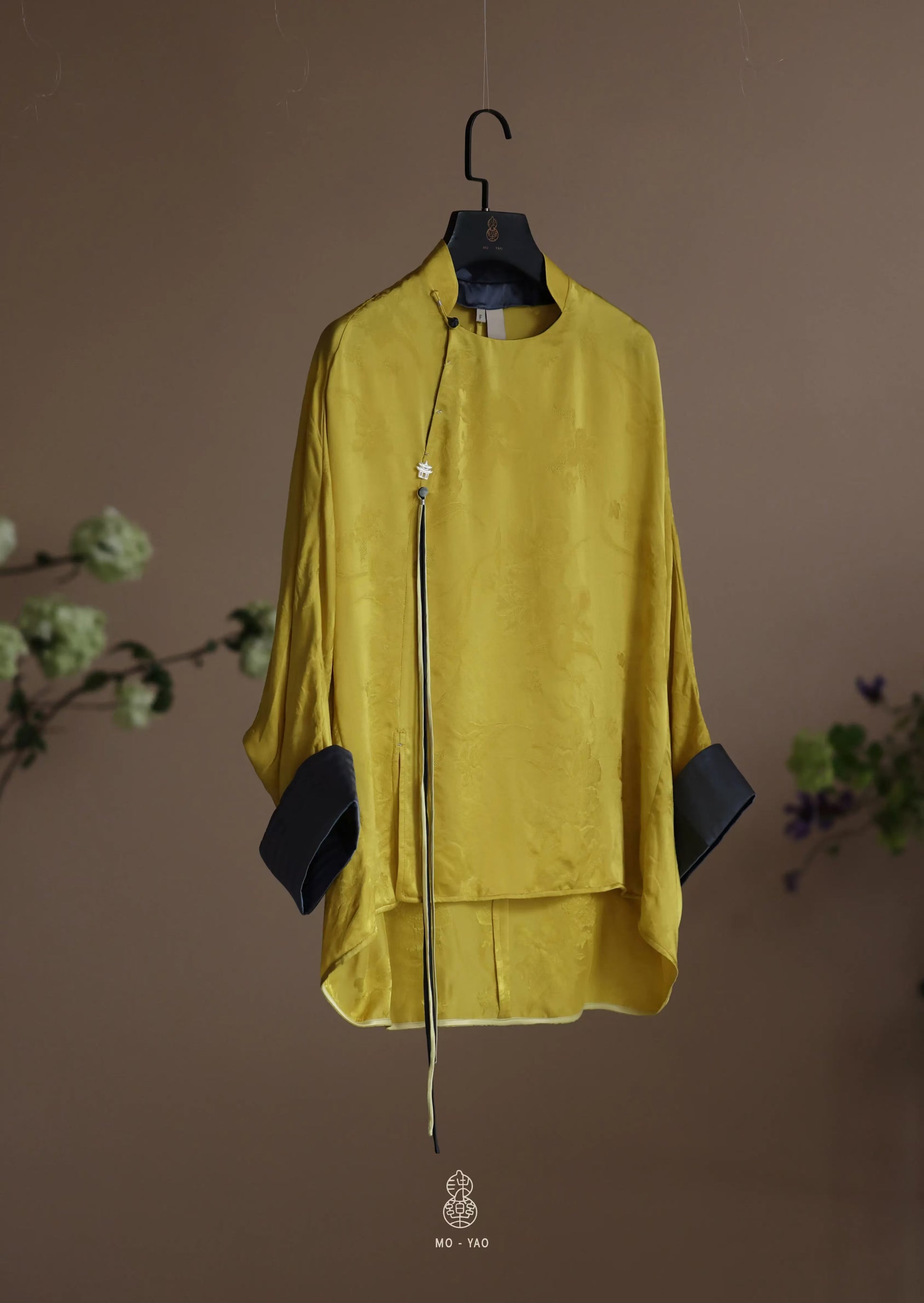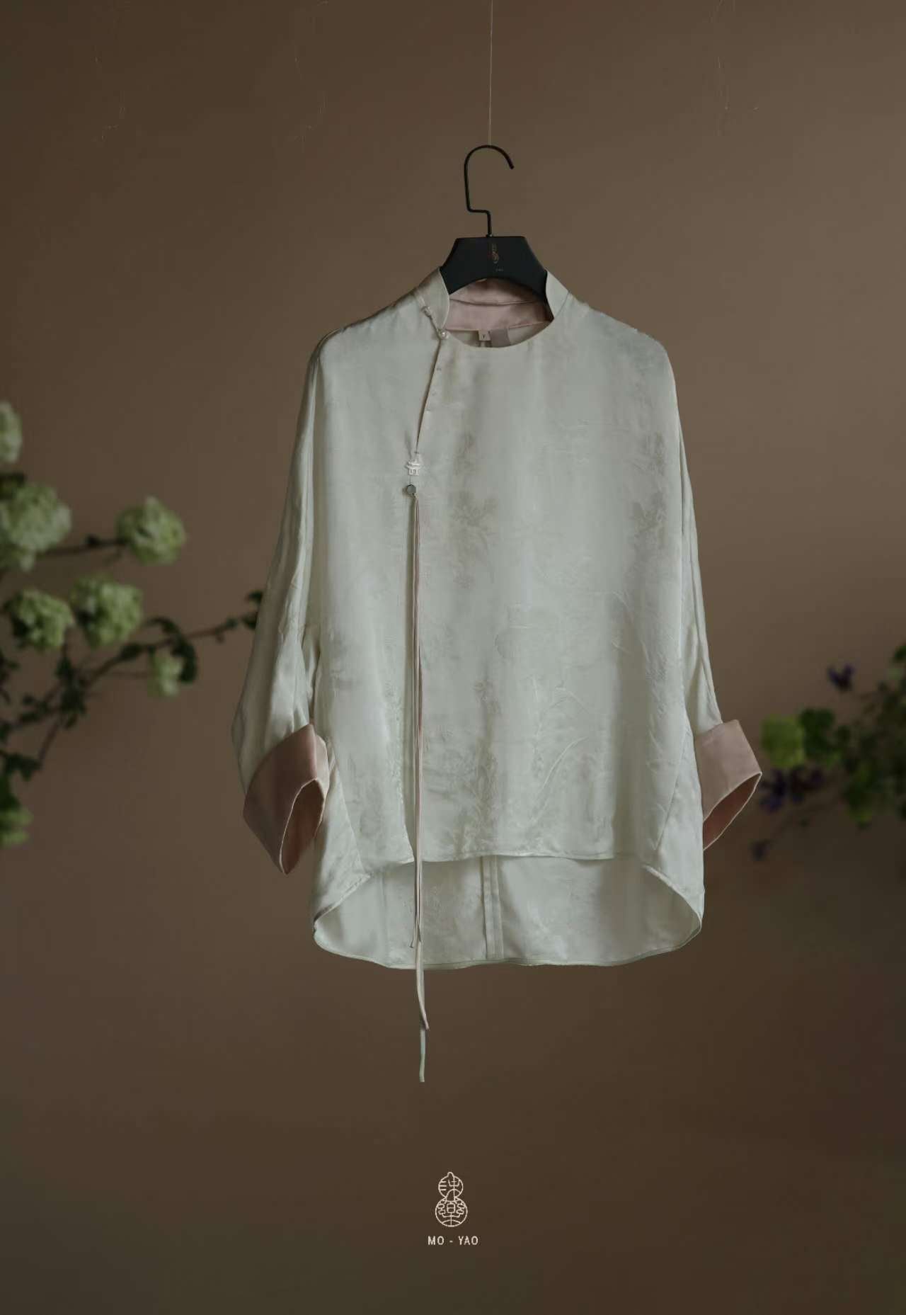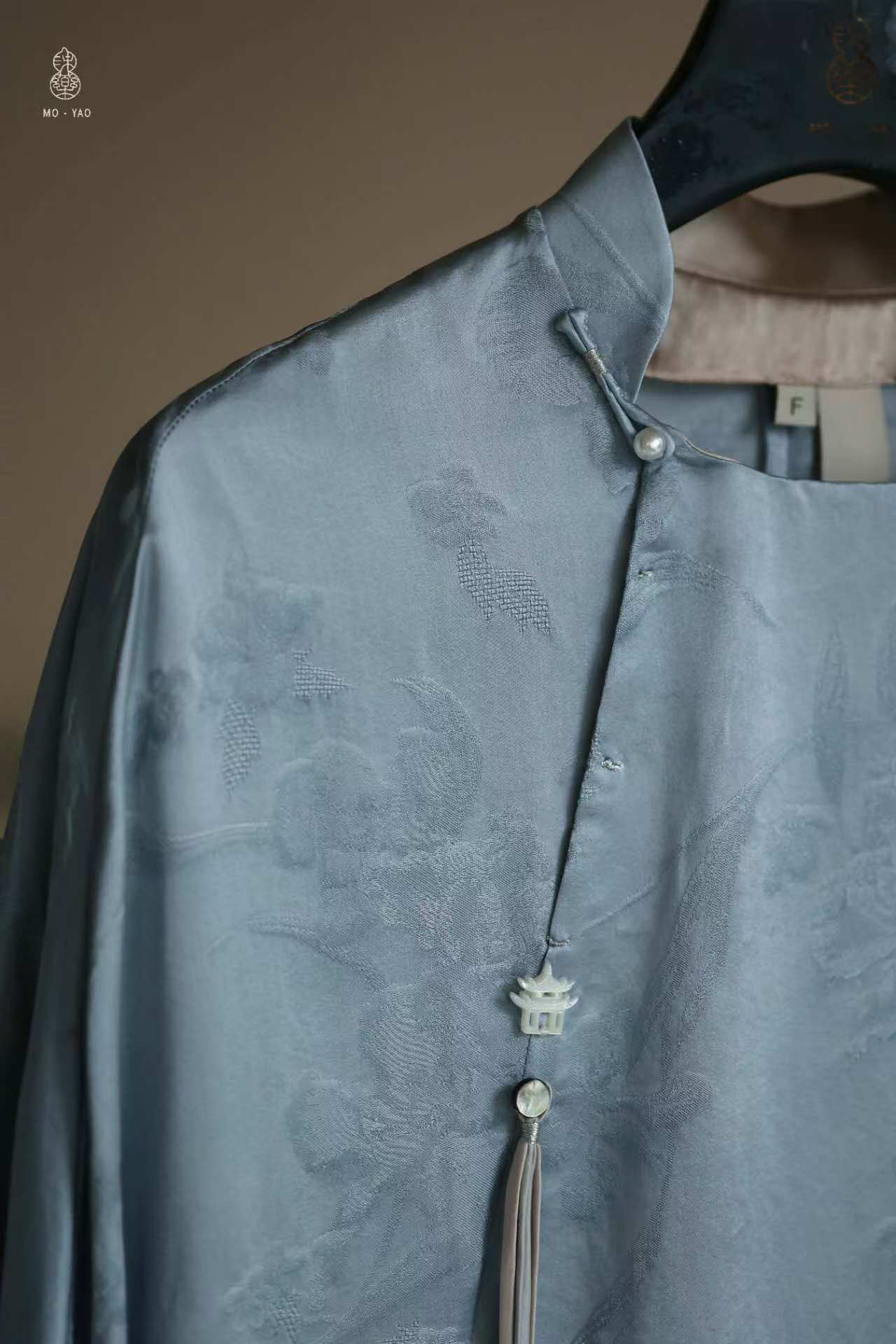 真丝提花撞色手工盘扣流苏上衣L897